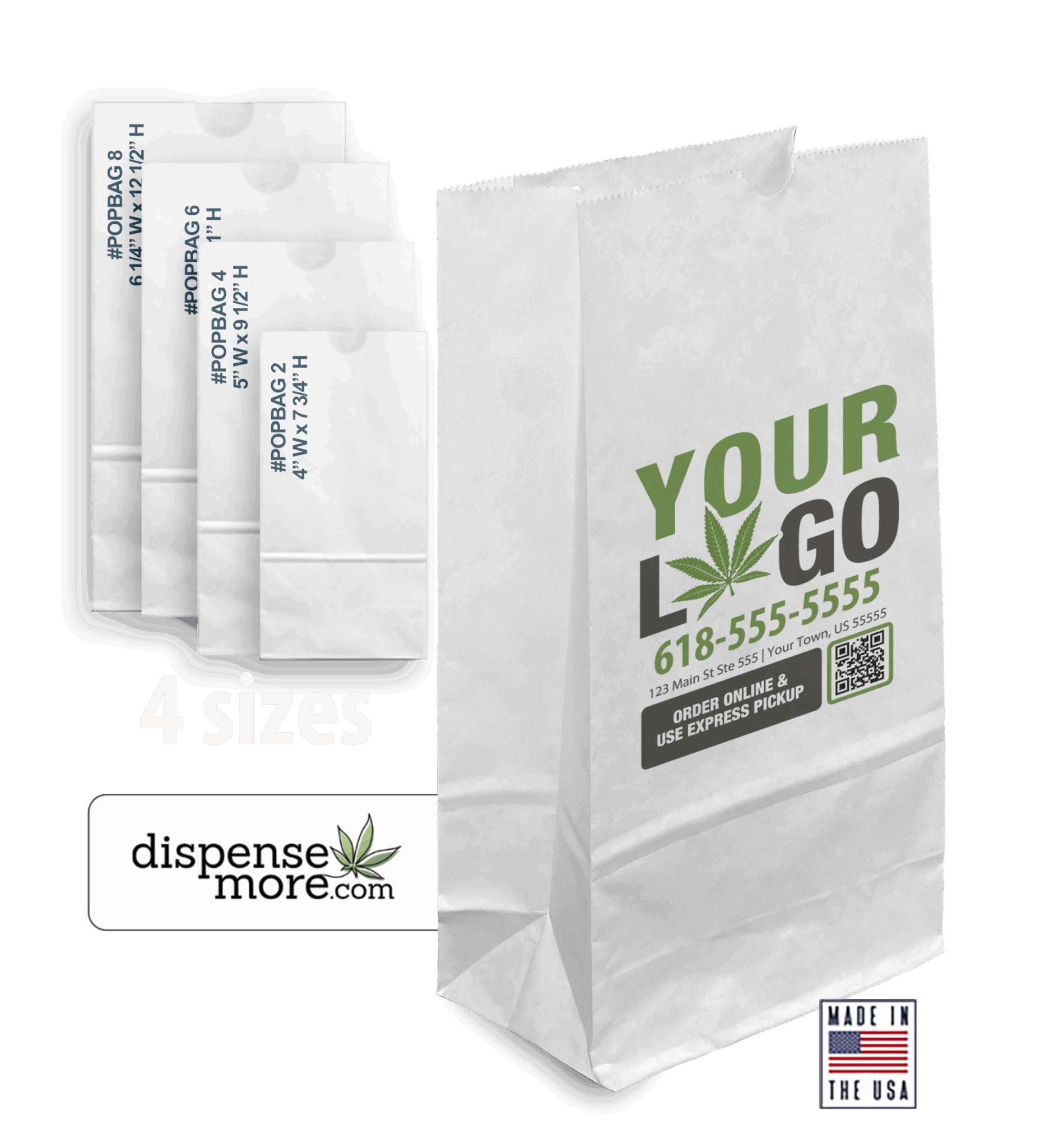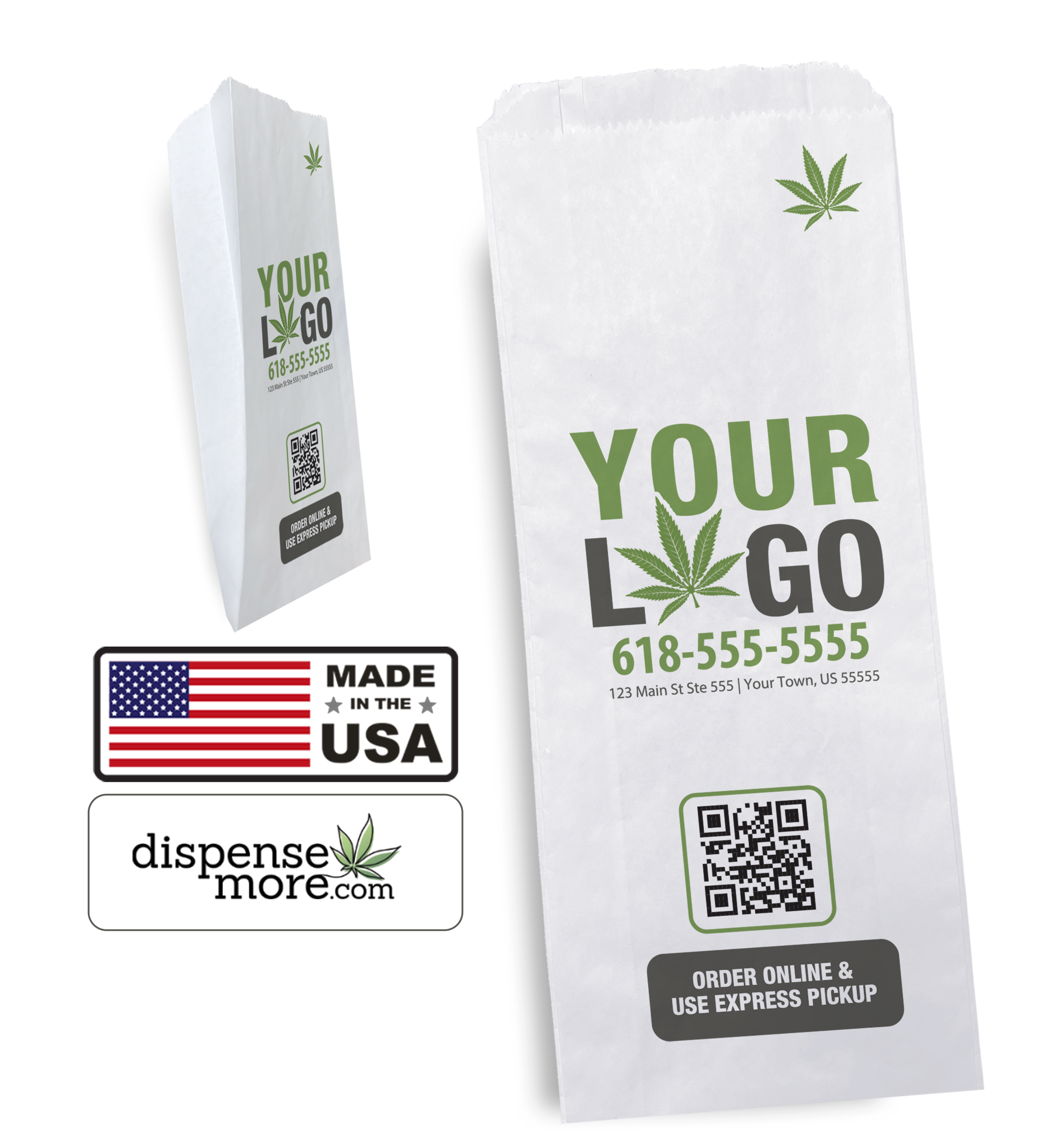 Place an order for custom cannabis bags and receive them in as little as five business days (some products require a two to three-week turnaround). Combine your order of cannabis packaging bags with business cards, stickers and other promotional products available in our online store. DispenseMore.com is the number one source for custom dispensary packaging and other cannabis business accessories. Customize your store with dispensary bags today.